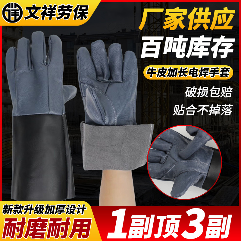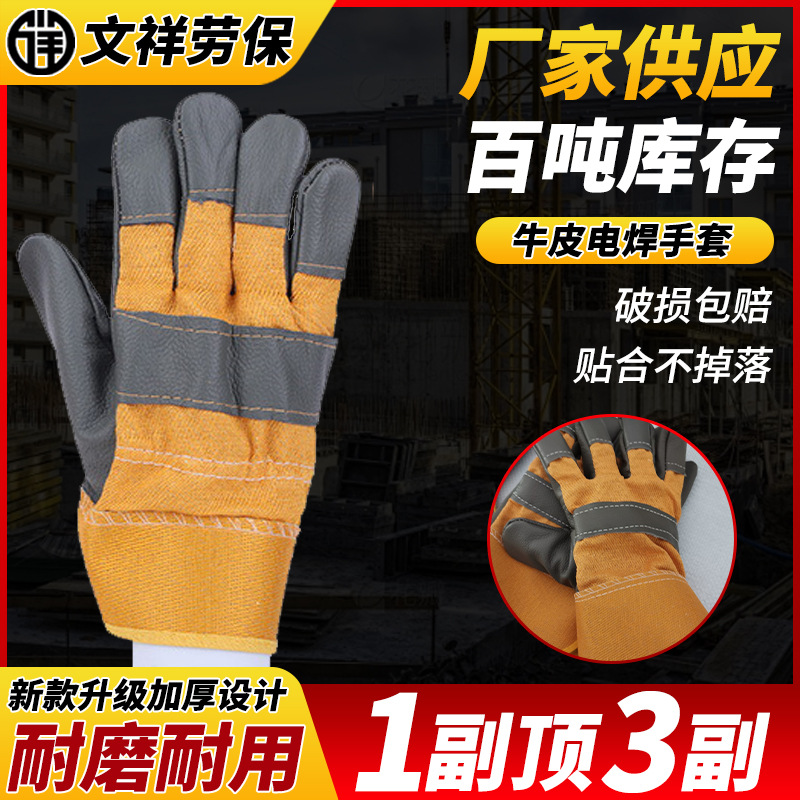 -               全掌牛皮电焊阻燃隔热防烫手套牛皮加厚耐磨耐高温短款焊工手套