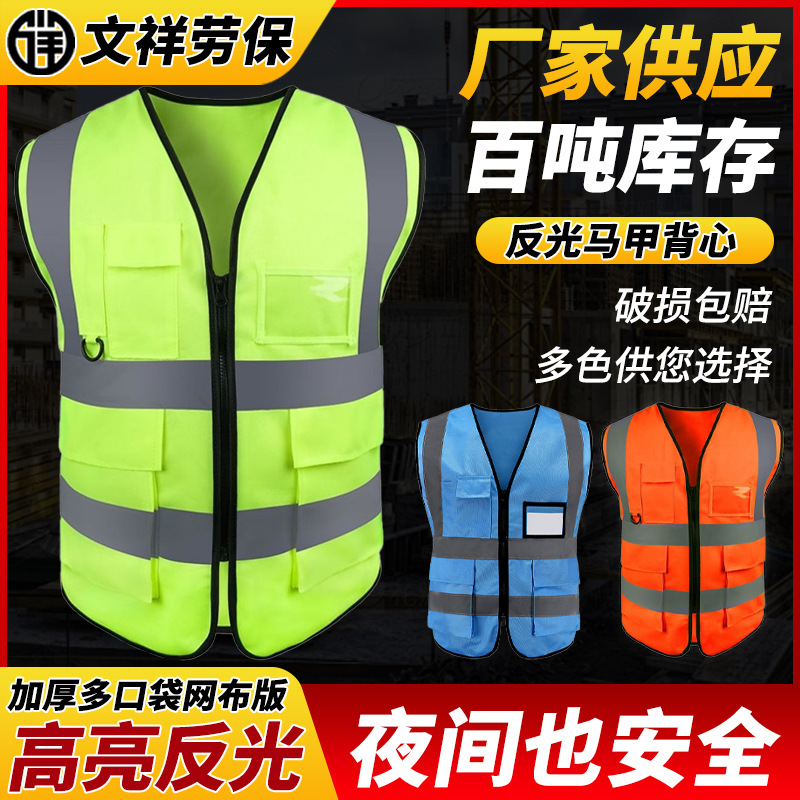 -               反光背心反光马甲多口袋工地交通环卫警示安全服透气衣骑手防护