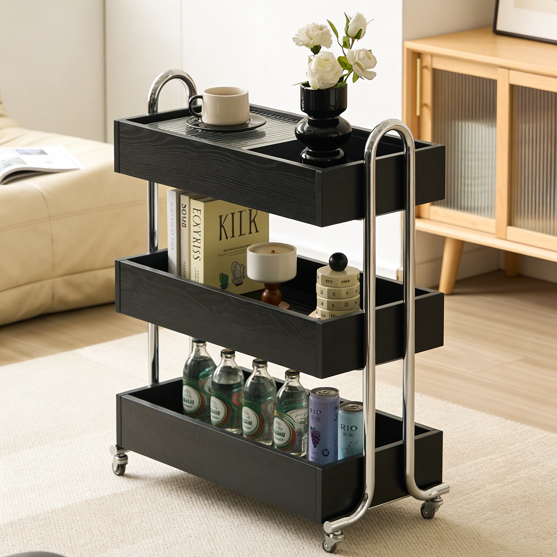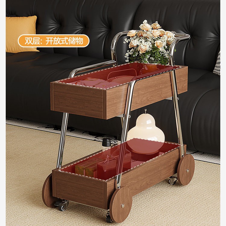 实木边几多层收纳架移动带轮储物推车沙发边几客厅收纳床头置物架
