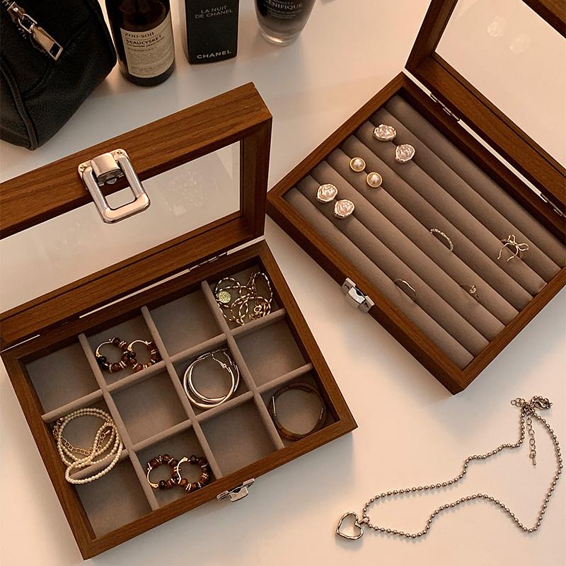 新款高档精致便携小型实木手饰品戒指项链耳钉耳饰盒首饰收纳盒