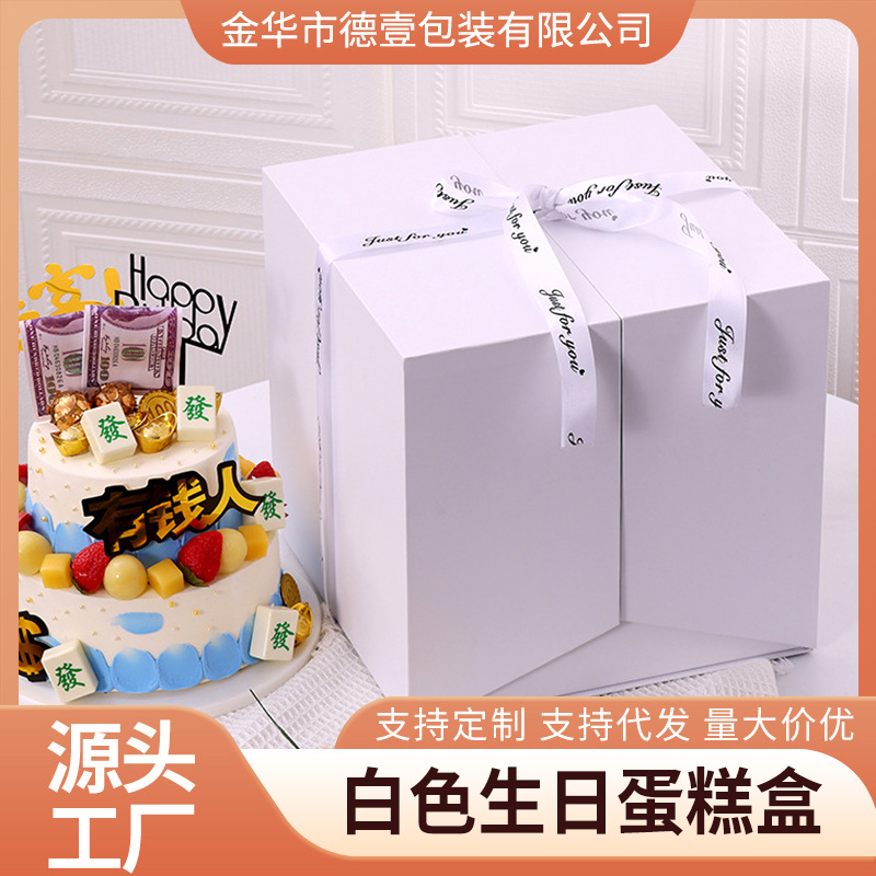 厂家现货白色生日蛋糕盒子硬塑料白色加高三合一烘焙包装盒批发