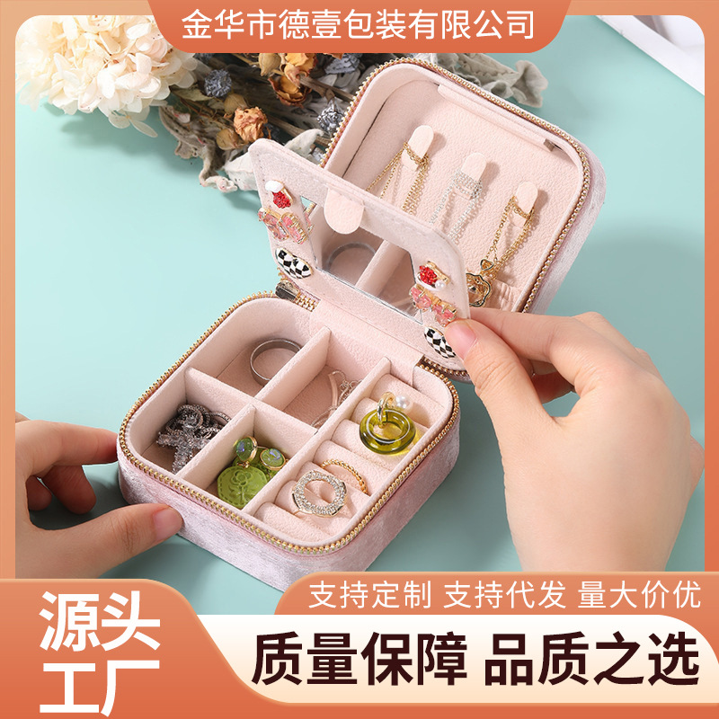 双层拉链首饰盒丝绒耳钉戒指饰品收纳盒规格款式潮流首饰收纳