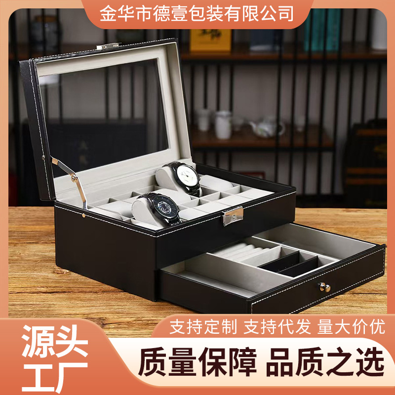 24位开窗手表盒大容量腕表收藏展示箱皮质名表礼盒手表收纳盒钟表