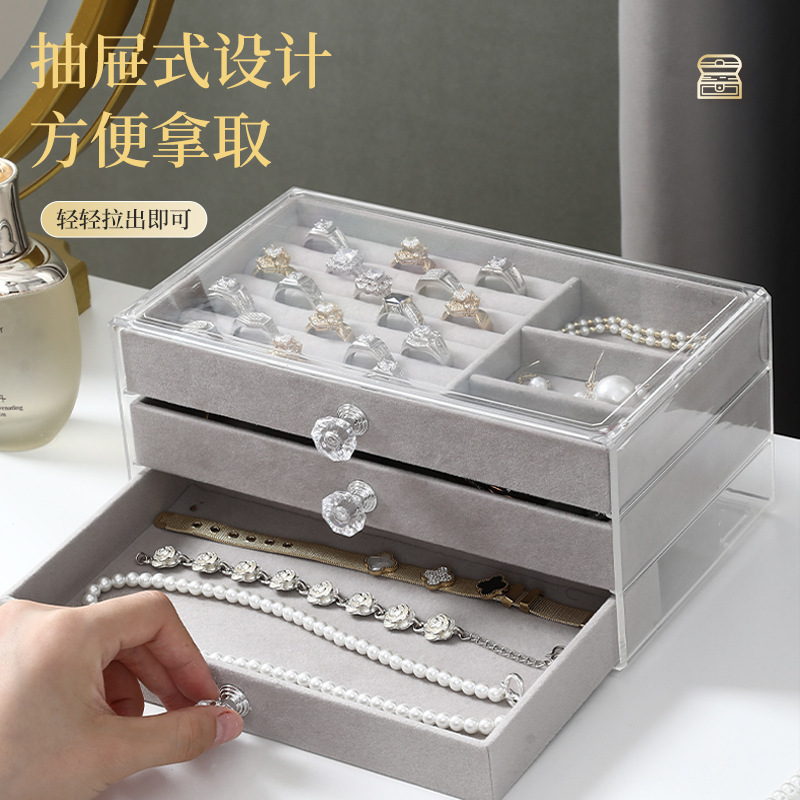 三层礼盒亚克力首饰盒耳环戒指项链饰品防氧化收纳盒规格款式