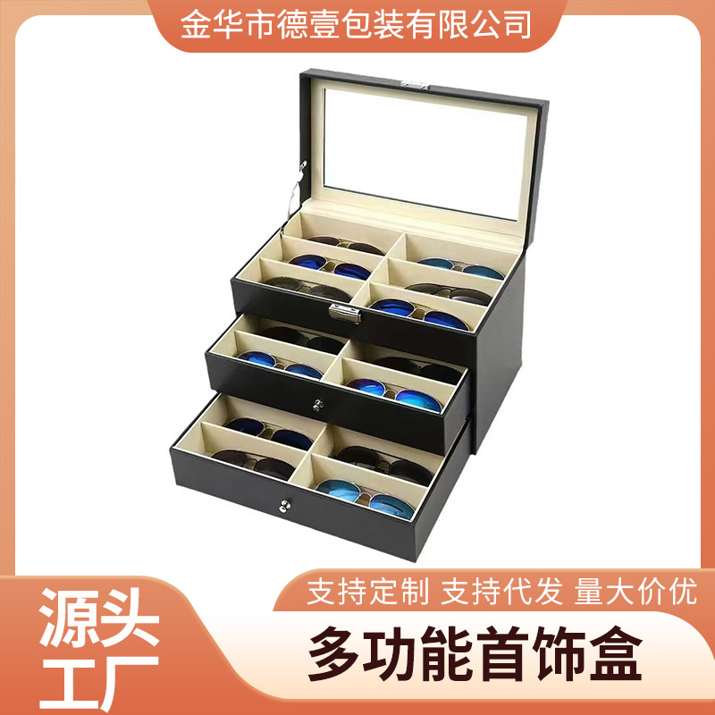 现货批发纯色PU18位眼镜盒子轻奢珠宝首饰防尘收纳盒批发耳饰