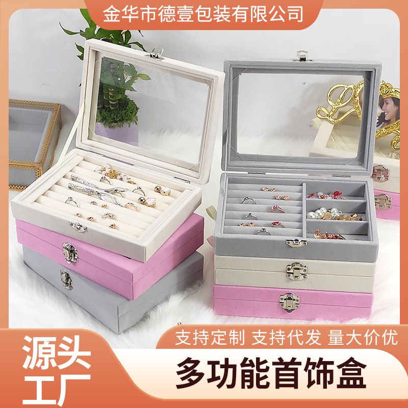 绒布首饰盒带透明盖珠宝箱项链戒指耳环首饰收纳盒展示盒批发