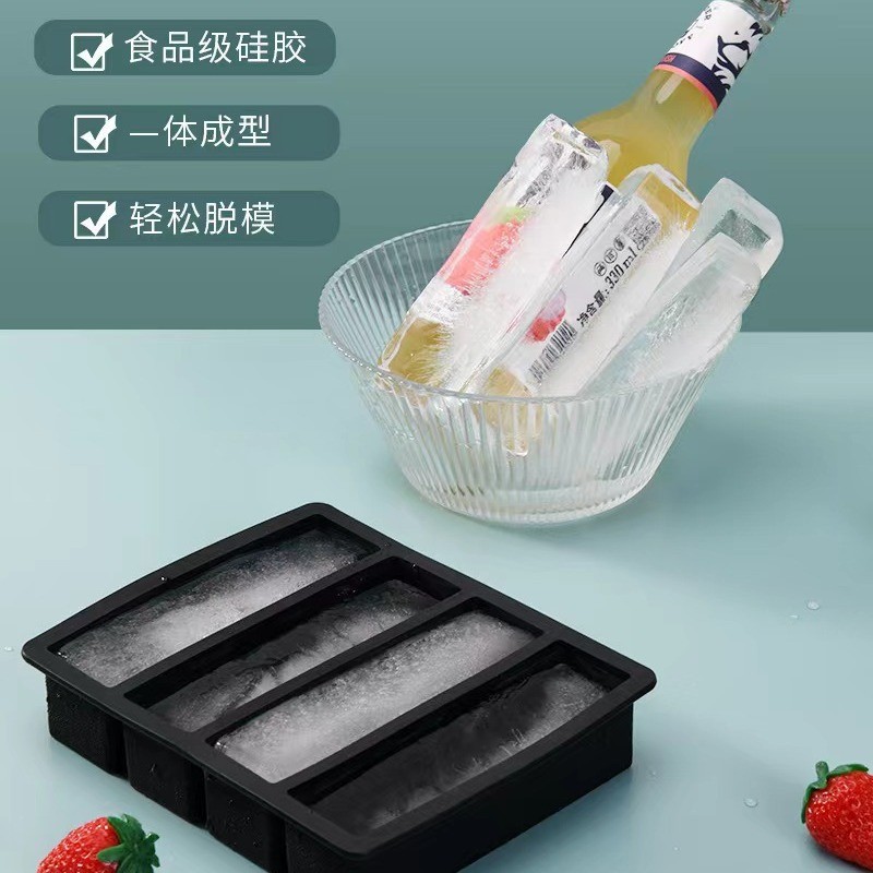 厂家直销4格长条硅胶冰格家用冰格硅胶冰格模具带盖冰格雪糕制模