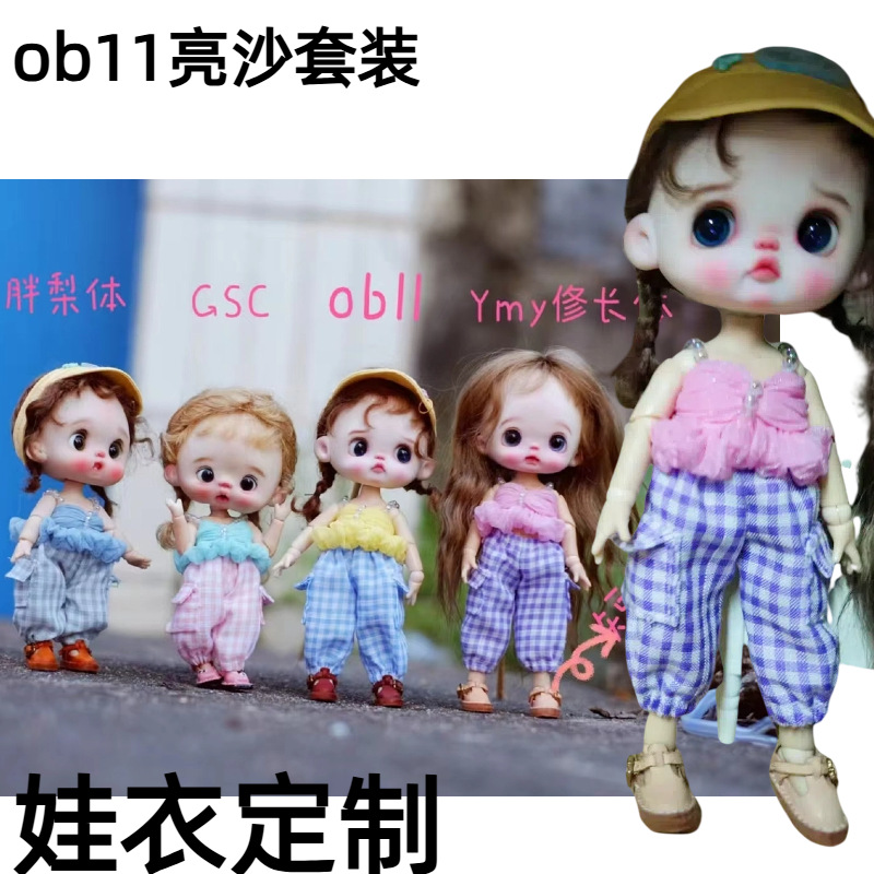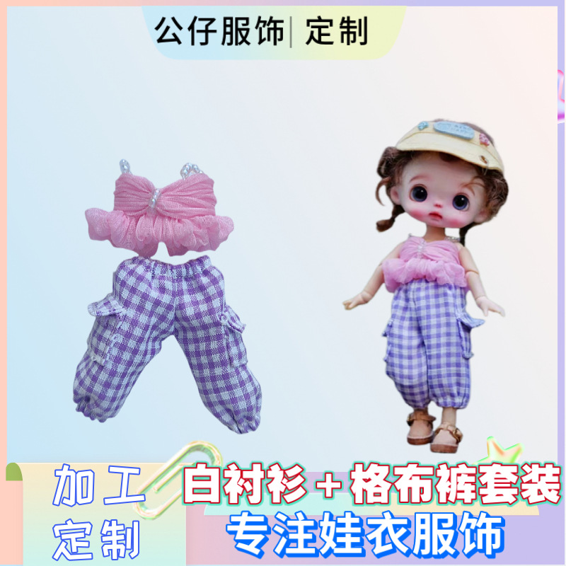ob11娃衣锦丝上衣布格裤套装12分bjd娃衣服饰休闲风10cm洋娃娃