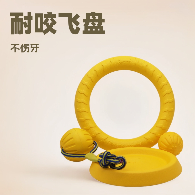 -               跨境宠物耐咬训犬飞盘狗玩具咬不坏狗狗浮水玩具发泡球穿绳球拉环