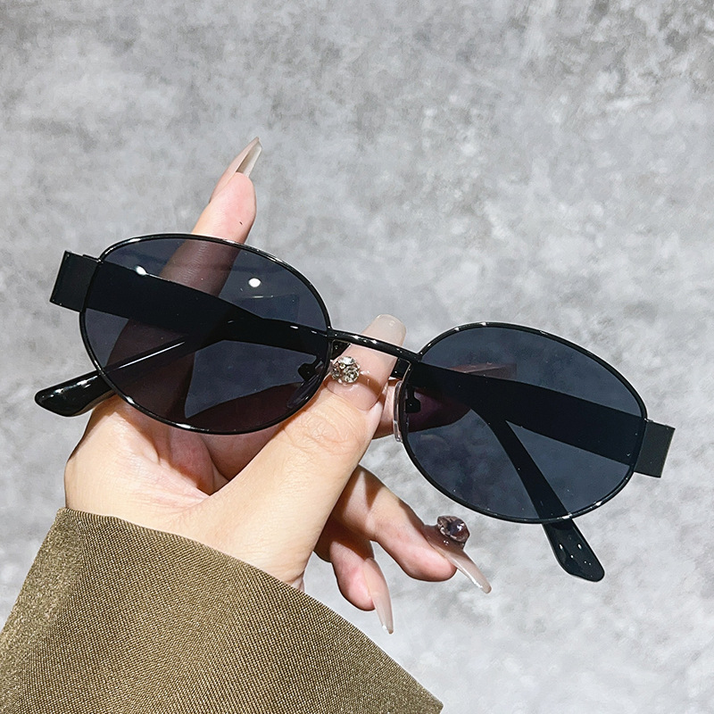 复古金属椭圆墨镜女小框韩版时尚高级感太阳眼镜防紫外线遮阳墨镜