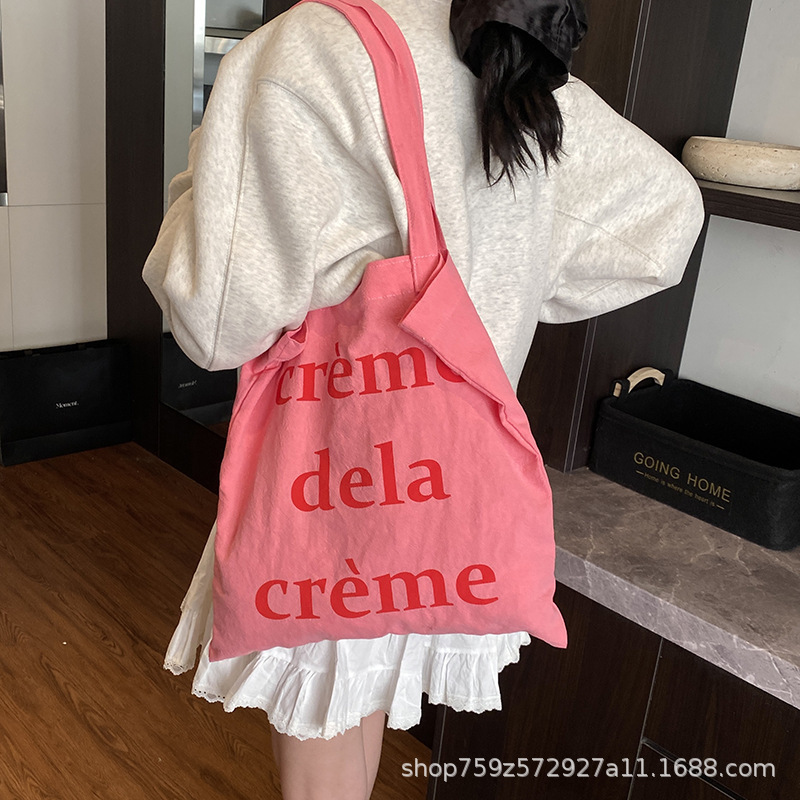 夏季薄款小众帆布包字母包甜美粉色单肩包韩系慵懒风ins感腋下包