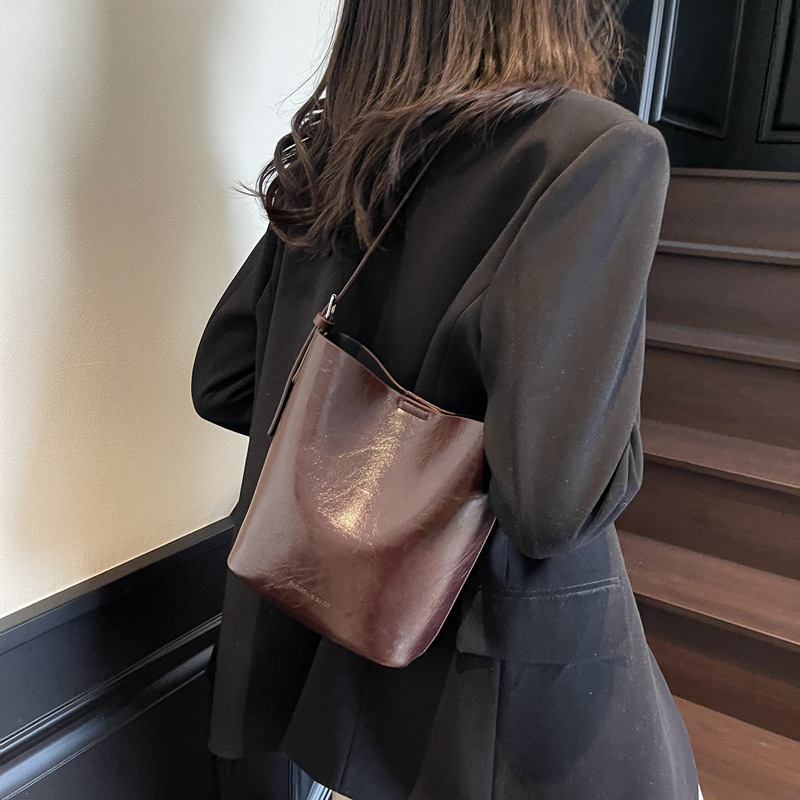 2025新款水桶包时尚复古手抓纹路单肩包腋下包斜挎包大容量斜挎包