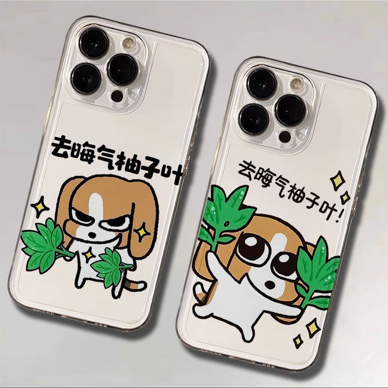 柚子叶小狗适用苹果17PROMAX手机壳16PRO创意15PROMAX透明14/13/X
