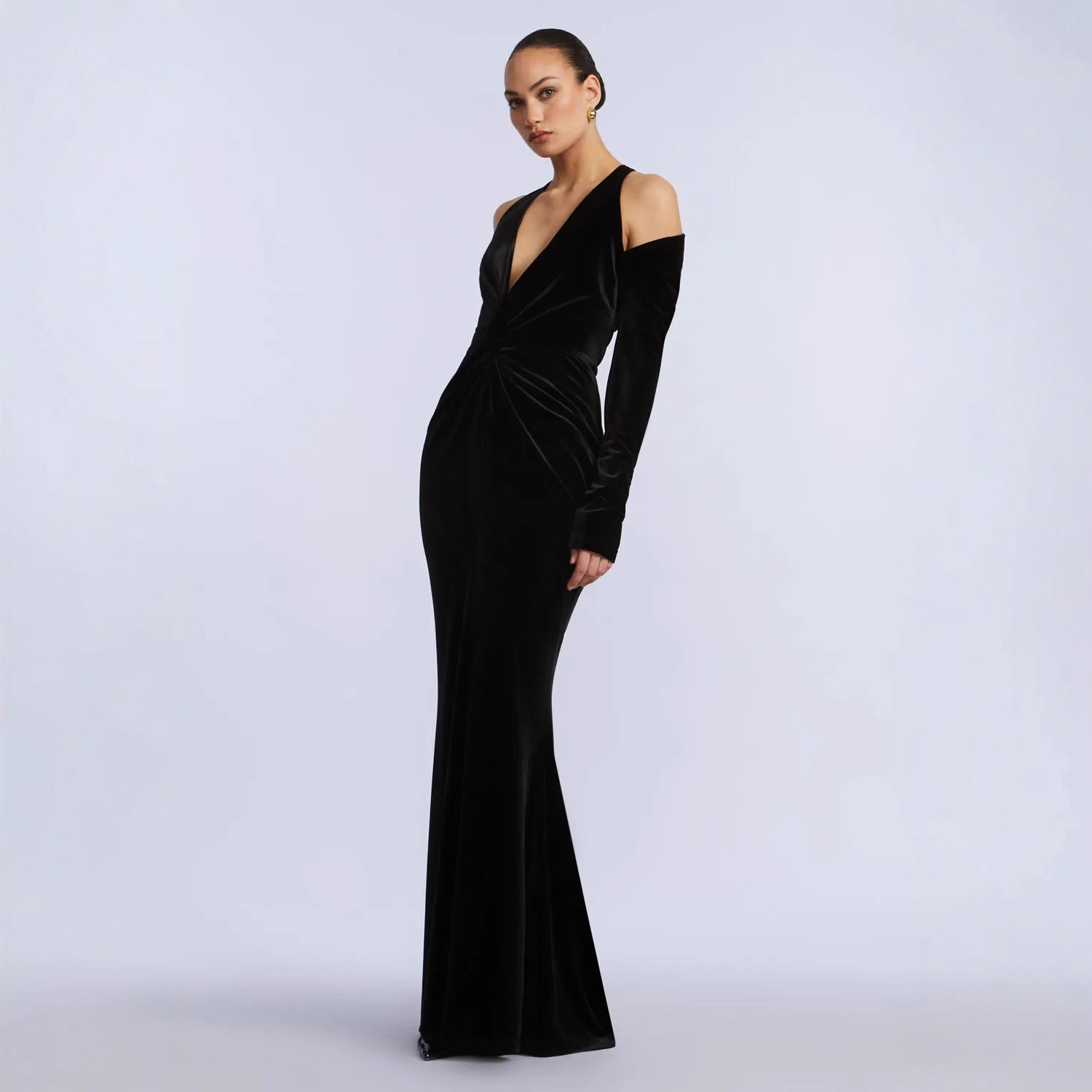 奢华欧美高级感跨境女装宴会挂脖晚礼服褶皱纯色丝绒鱼尾连衣裙女