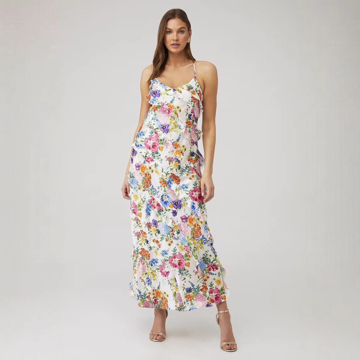 跨境奢华夏季高级度假风摄影休闲碎花连衣裙吊带显瘦包臀碎花裙女