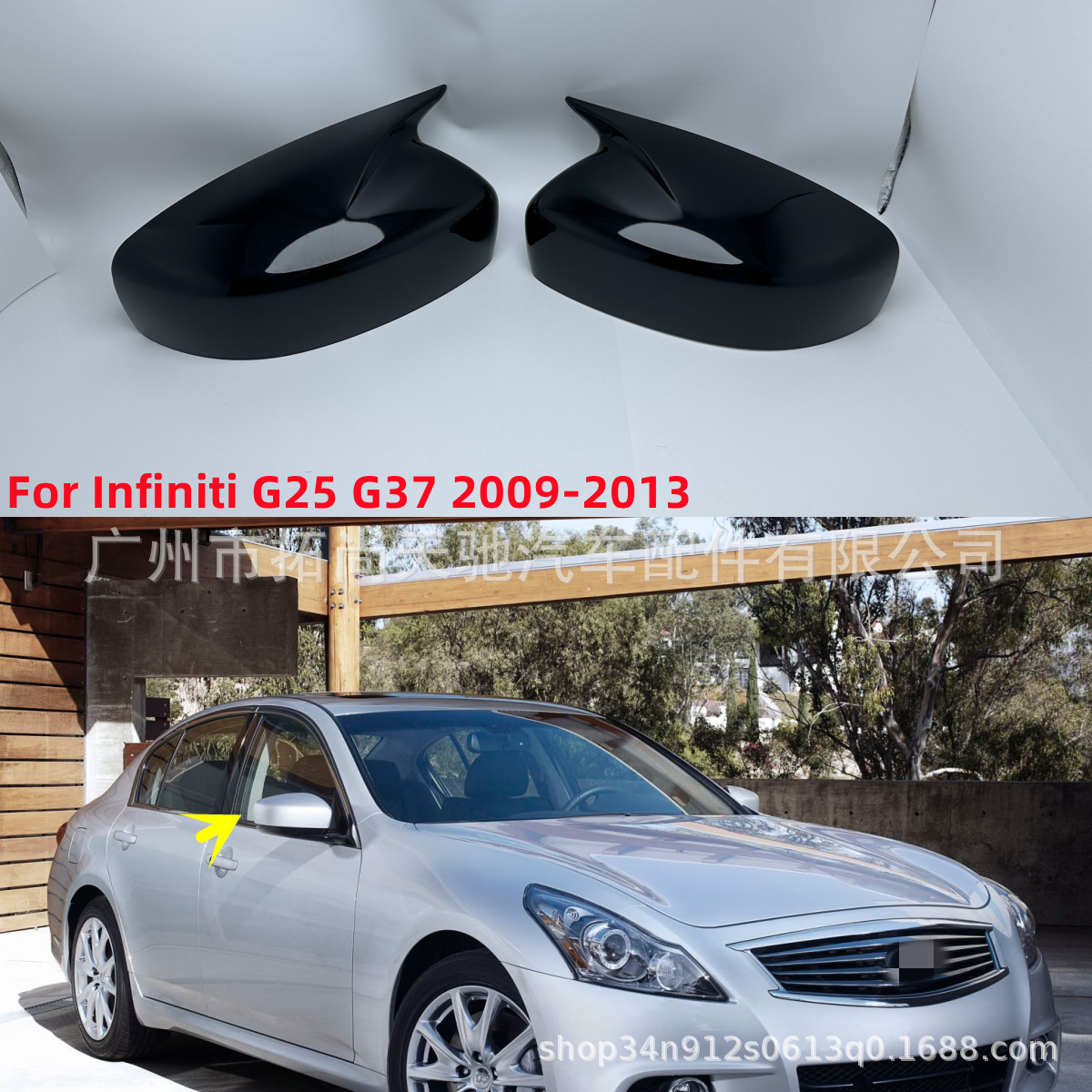 适用于英菲尼迪 G25 G35 G37 牛角倒车镜盖后视镜外壳09-14款