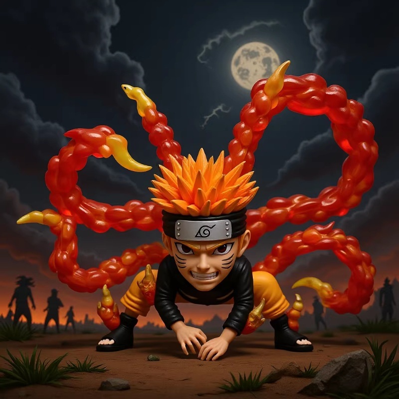 火影 一生系列 四尾鸣人 Q版 暴走 战斗尾兽鸣人 人形态 盒装手办