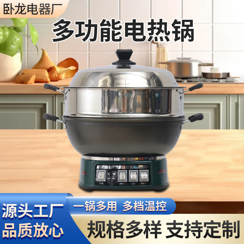 定制不锈钢电热锅多功能家用炒菜电炒锅火锅蒸煮炖一体插电大功率