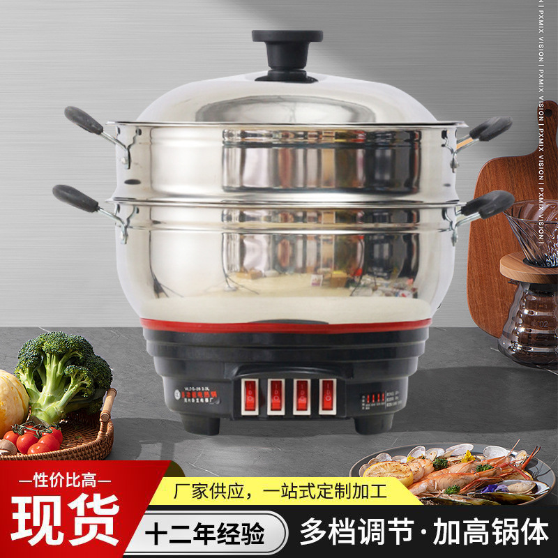 不锈钢电热锅蒸煮一体锅电炒菜锅插电饭锅多功能家用电火锅