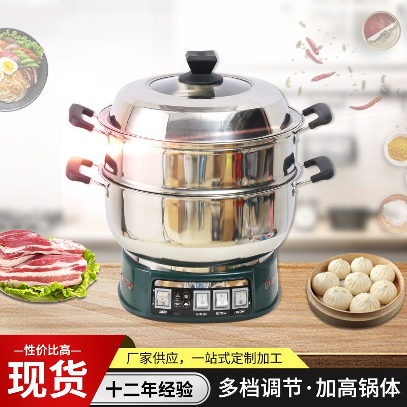 家用不锈钢双层电热火锅 定制多功能电热锅 蒸炖炒电煮锅电热锅