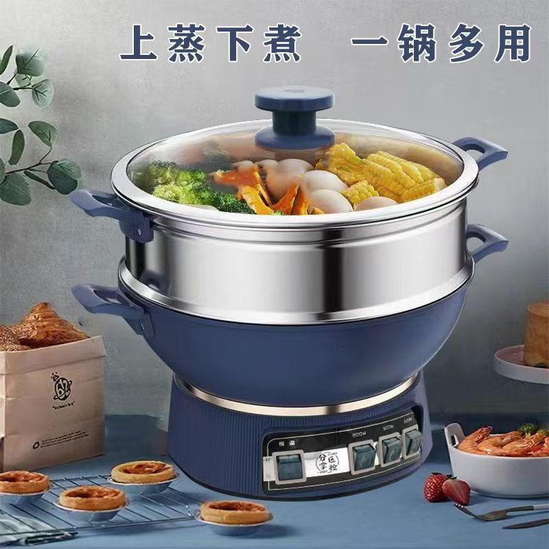 2024新款多功能电热锅电炒锅家用小电锅电煮锅带笼蒸锅电火锅批发
