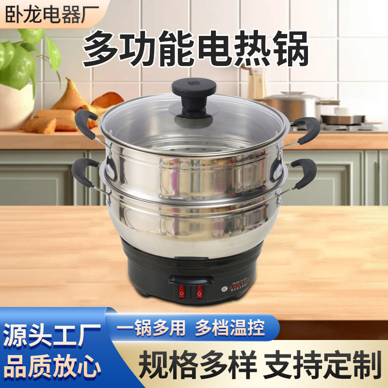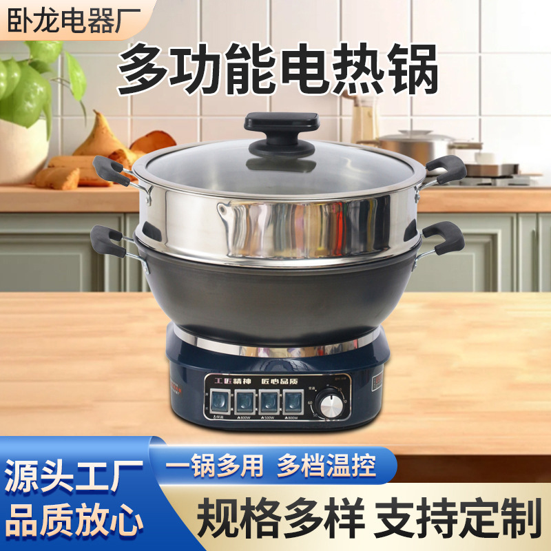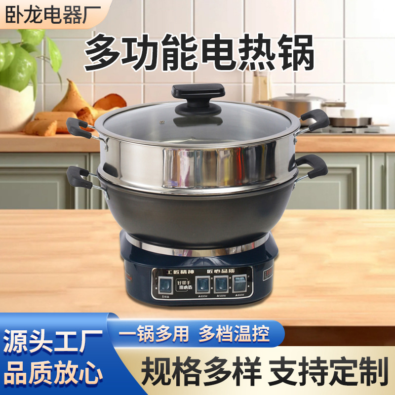 加工定制多功能电锅电炒锅家用电煮锅带笼蒸锅电火锅批发电热锅