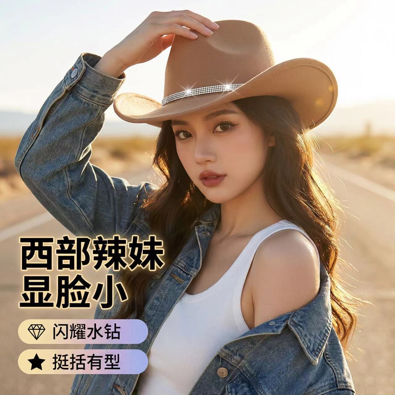 跨境外贸亚马逊新品水钻牛仔帽音乐派对爵士帽毛毡西部牛仔帽批发