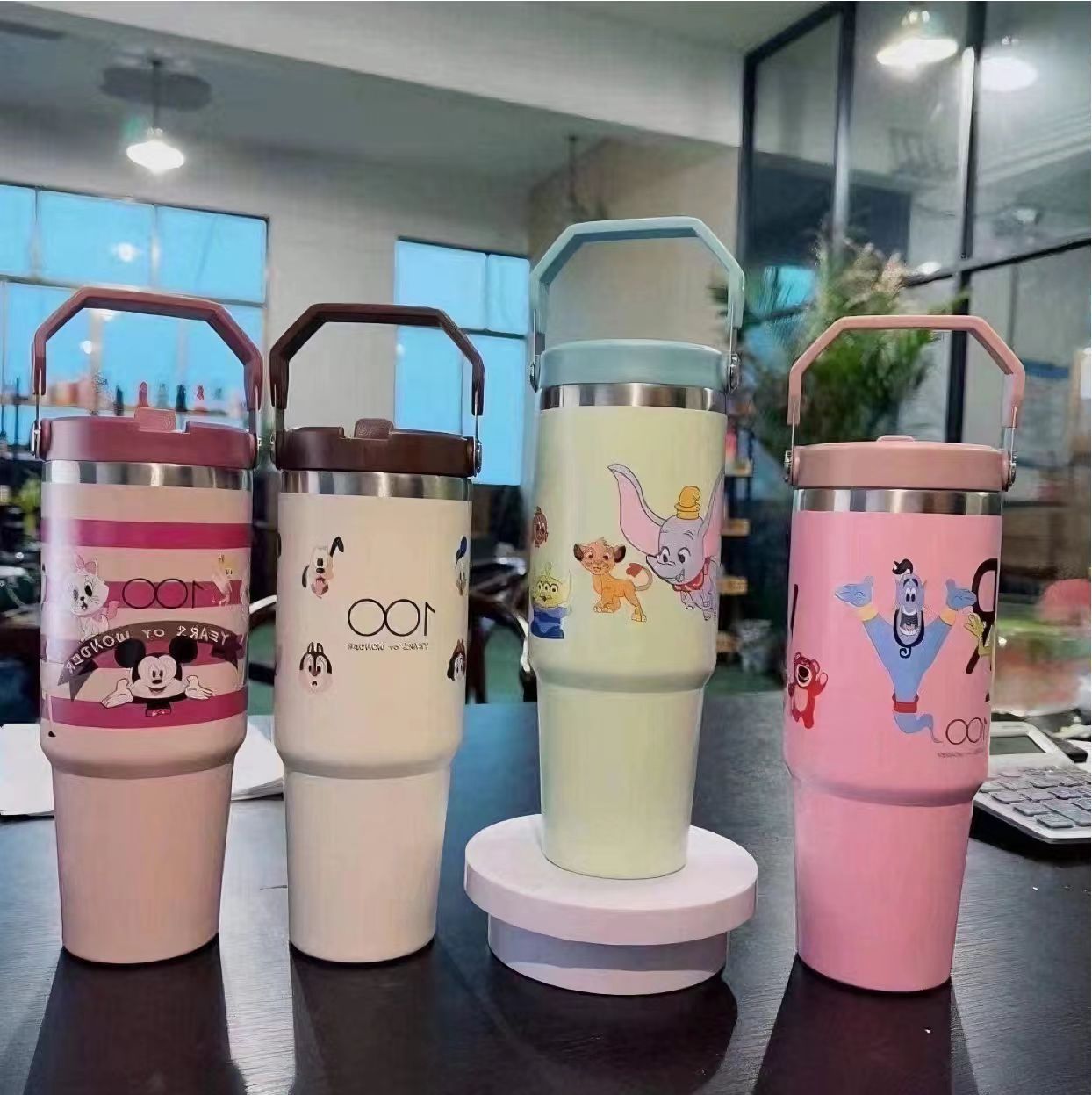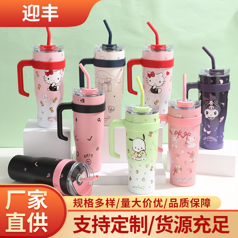 跨境大容量304不锈钢保温杯高颜值动漫卡通图案冰霸杯车载吸管杯