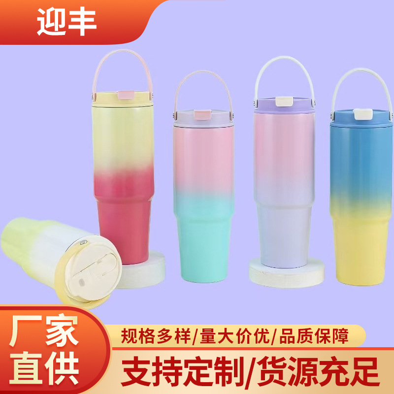 大容量渐变保温杯跨境30oz渐变提手汽车杯304不锈钢保温杯户外便