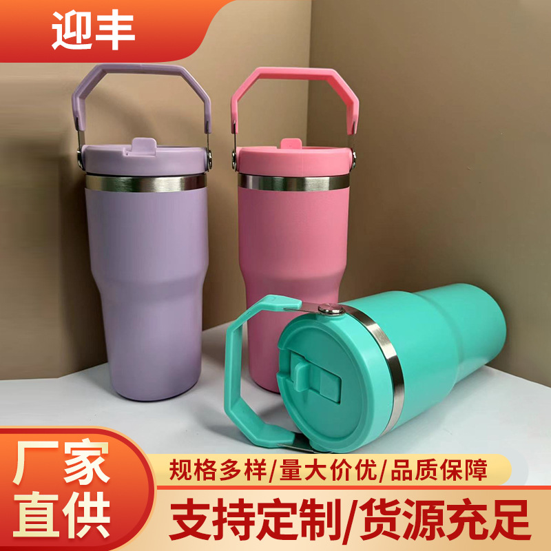304不锈钢大容量保温杯单饮提手汽车杯户外便携保冷喷漆冰霸杯