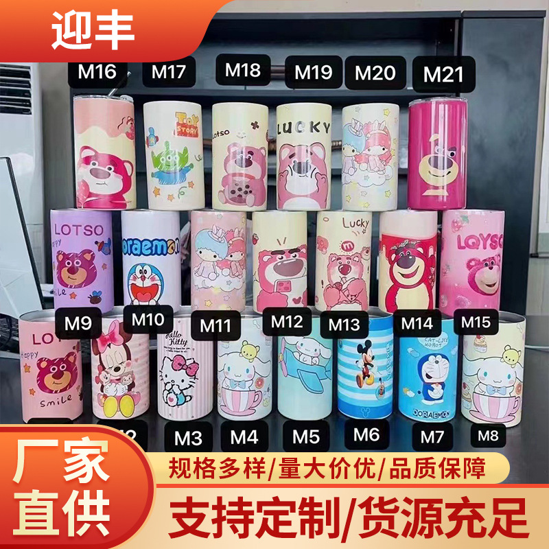 高颜值20oz汽车杯便捷式吸管水杯3D打印卡通定 制304不锈钢保温杯