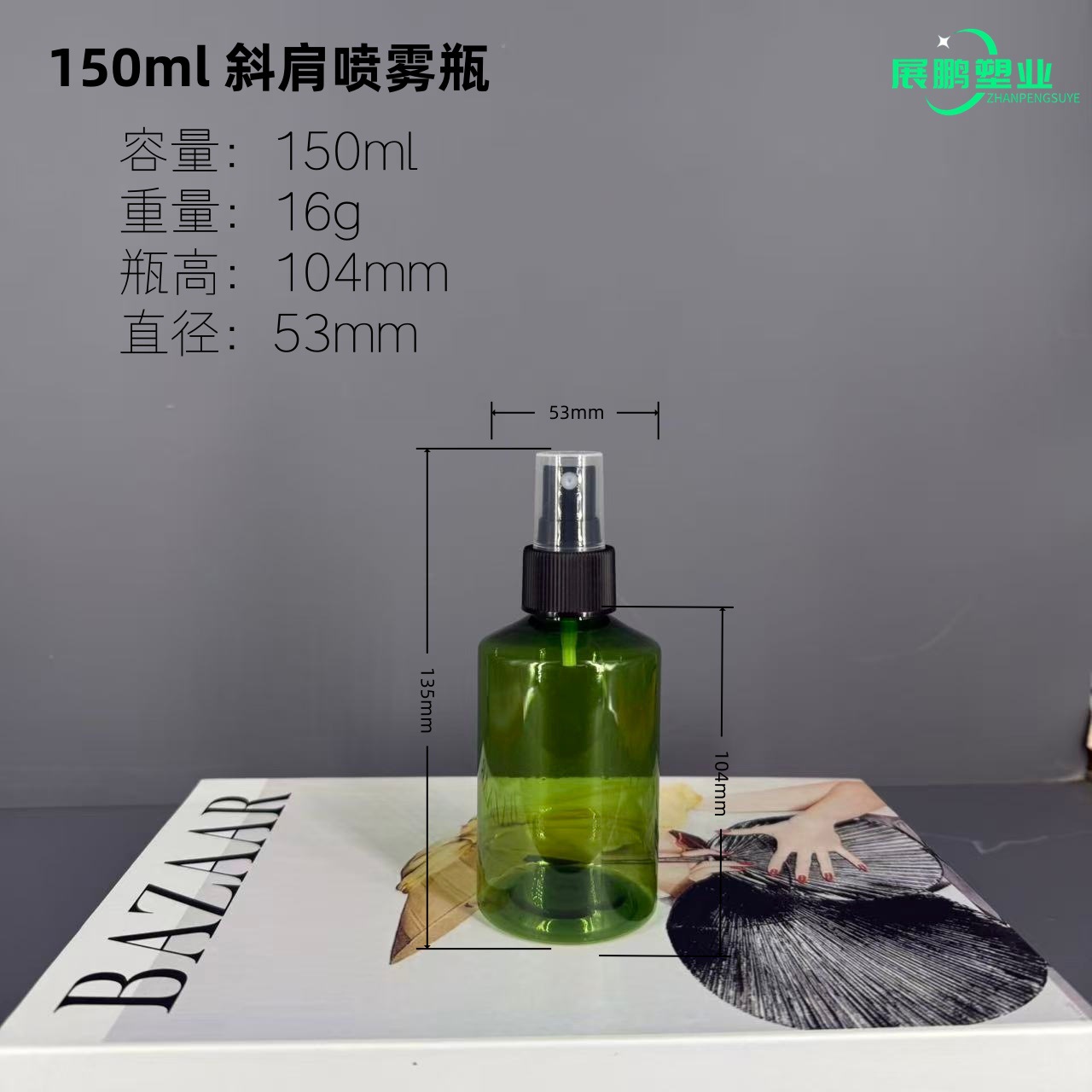 现货150ml斜肩瓶PET材质墨绿色塑料瓶雾化分装瓶细雾小喷瓶纯露瓶