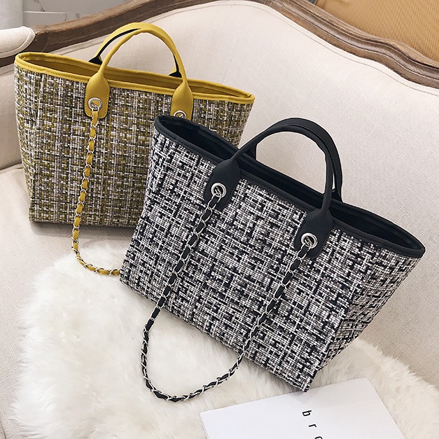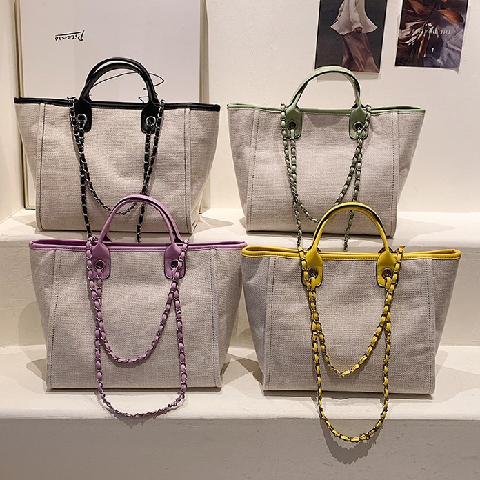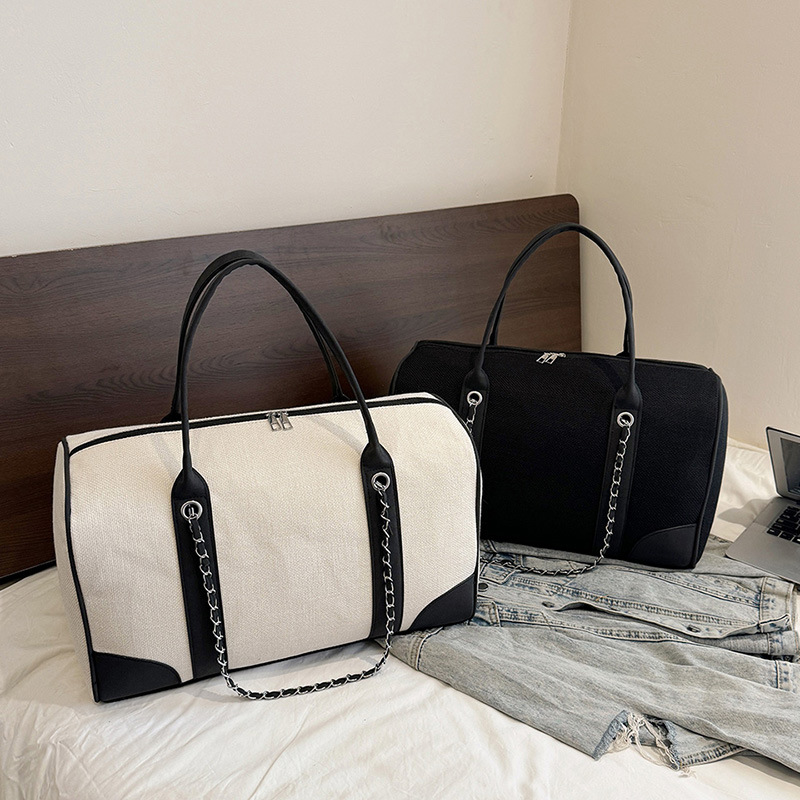 批发韩版女包2024新款大容量潮包撞色链条托特包单肩包网红手提包