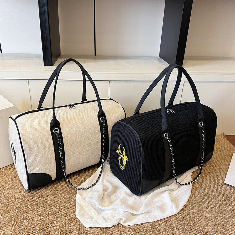 跨境新款2024大容量撞色帆布手提刺绣包女包通勤旅行大包单肩包潮