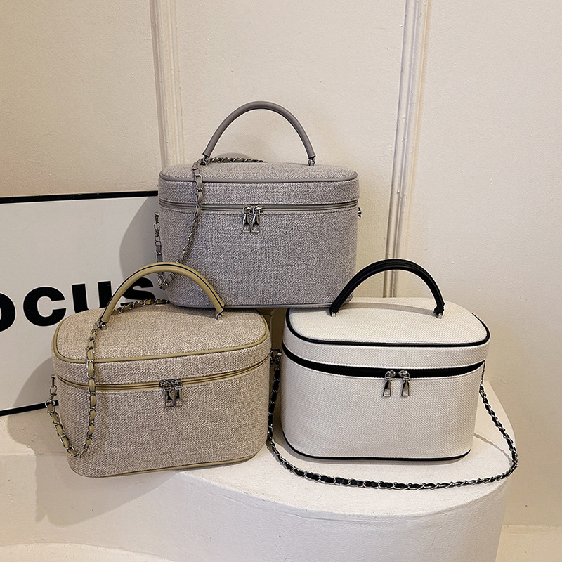 时尚女包跨境批发2024新款帆布手提化妆包大容量单肩通勤盒子包