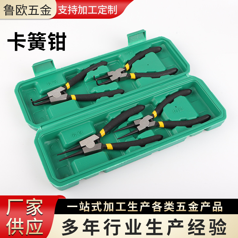 厂家供应卡簧钳套装现货挡圈电子斜口钳套装卡簧钳4件套多色