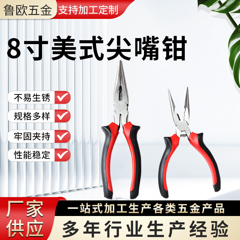 鲁欧五金工具8寸美式尖嘴钳 红黑蛤蟆柄45#钢多功能尖嘴钳工业级