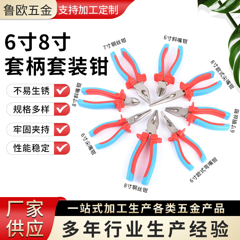6寸8寸套柄套装钳DIY手工钳多功能斜口钢丝尖嘴钳套装厂家批发