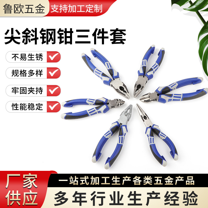 厂家批发销售斜嘴钳钢丝钳尖嘴钳多功能五金工具三件套剪切