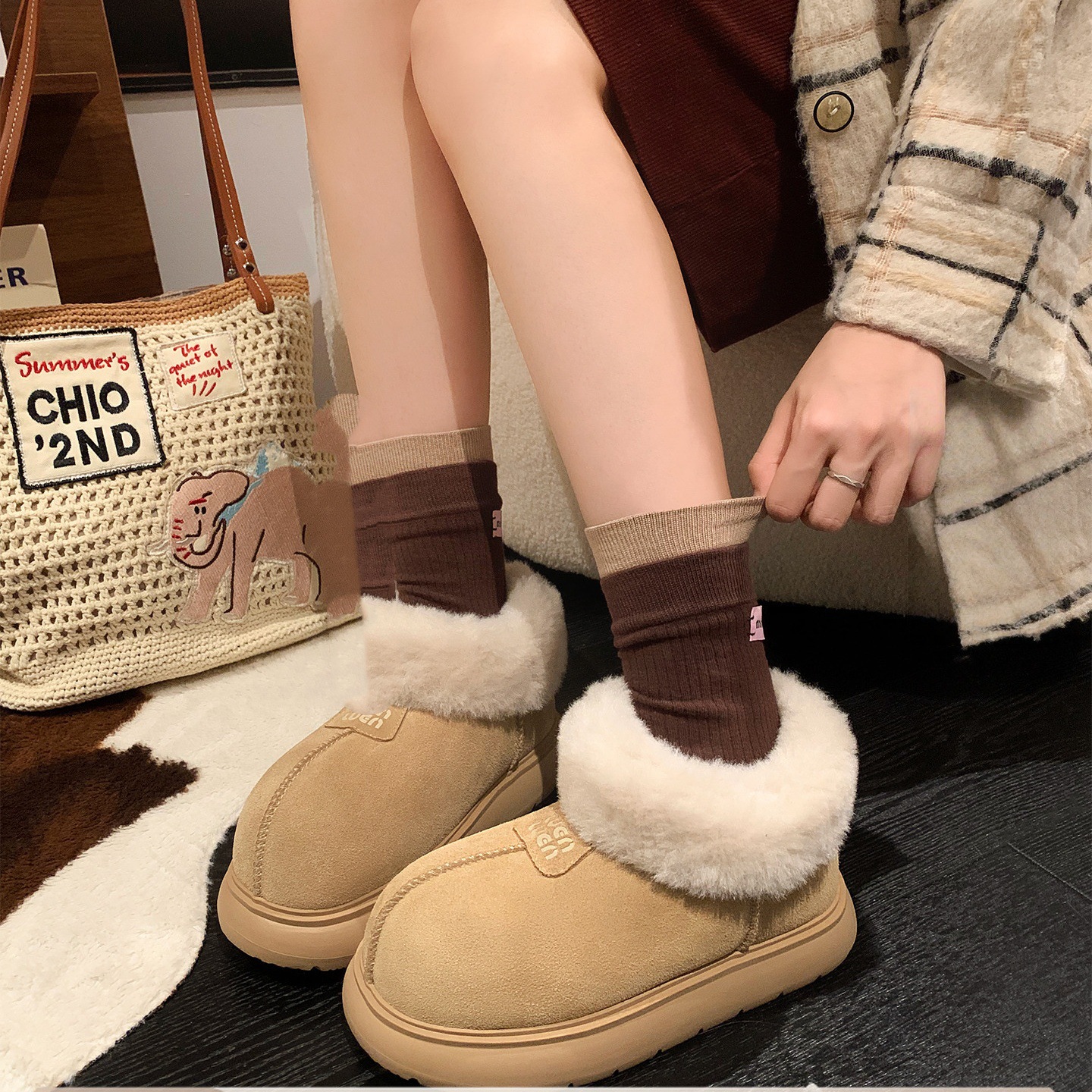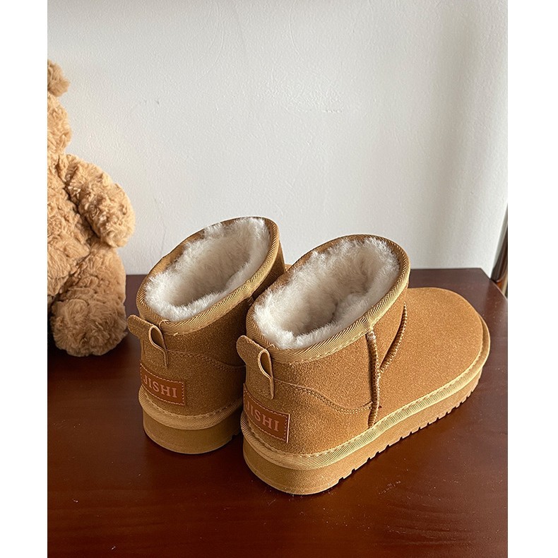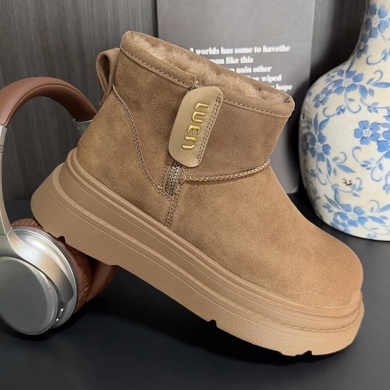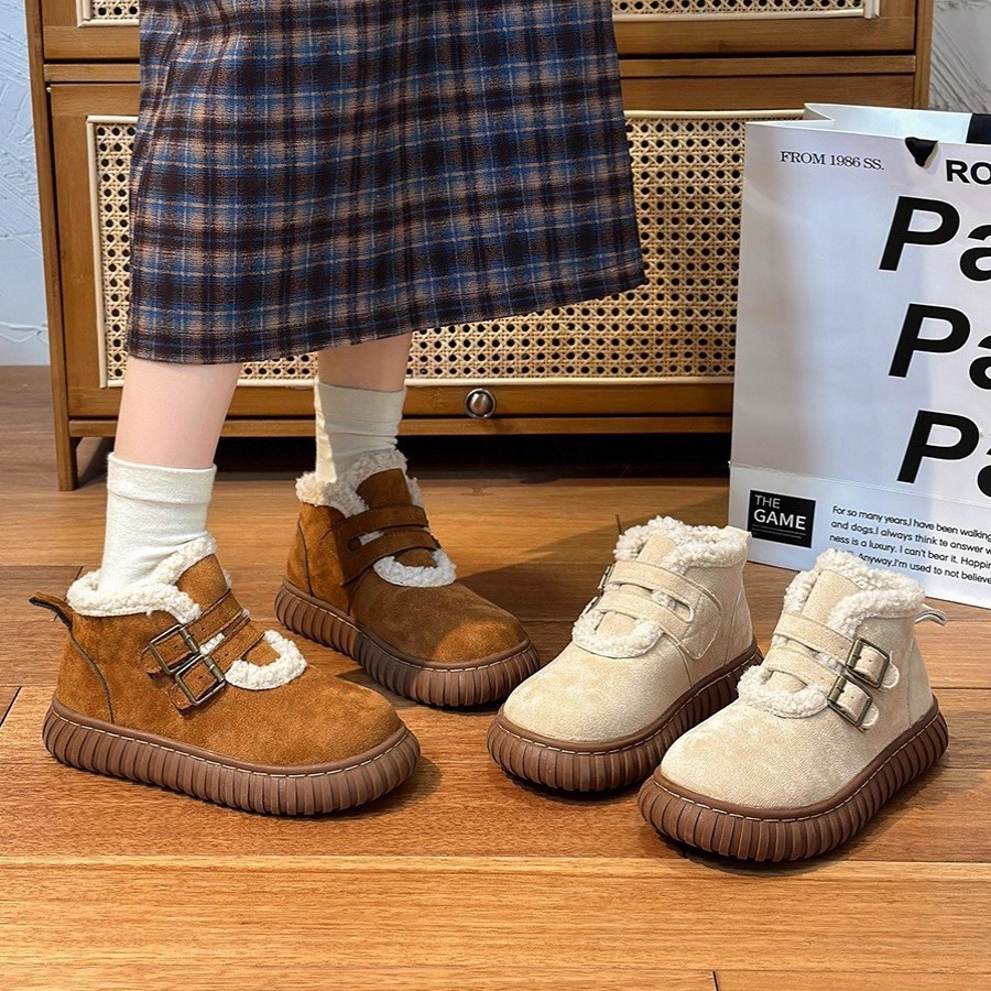 跨境2025新款雪地靴过年美拉德女鞋棉鞋加绒保暖麂皮绒短筒靴扣带