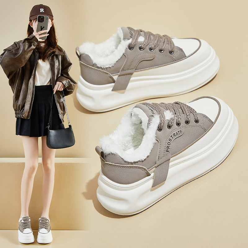 跨境外贸2025冬季加绒小白鞋新款韩版ins女学生厚底运动板鞋休闲