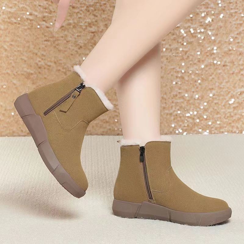 跨境外贸磨砂皮雪地靴棉鞋2025冬季新款加绒加厚东北厚底保暖雪地