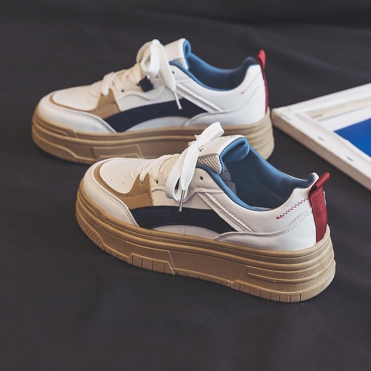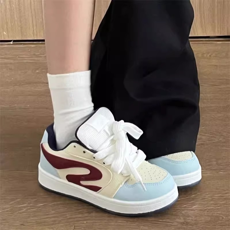 2025年厚底防滑运动板鞋女士2025年春季新款轻便百搭拼色休闲鞋