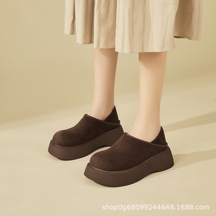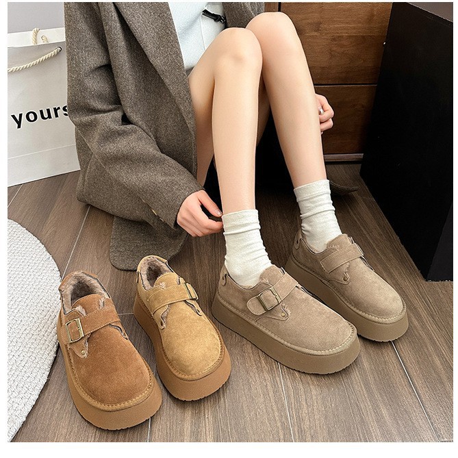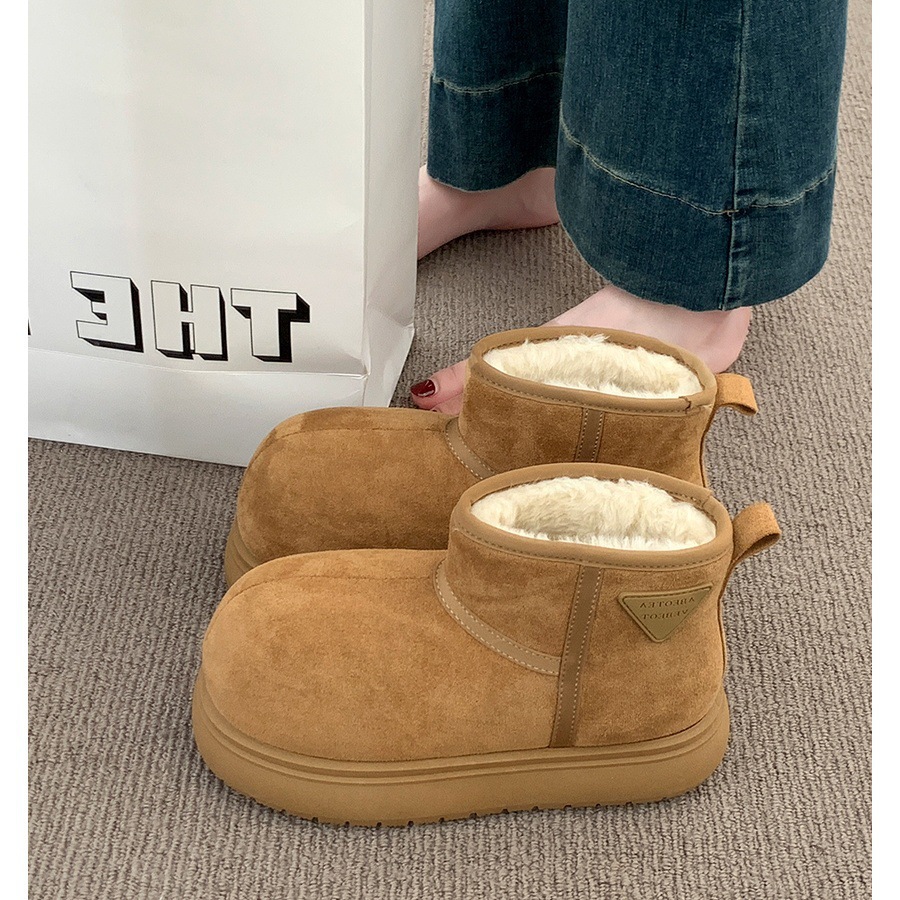 跨境2025冬季新款圆头保暖卡皮巴拉磨砂皮加厚雪地棉靴面包鞋
