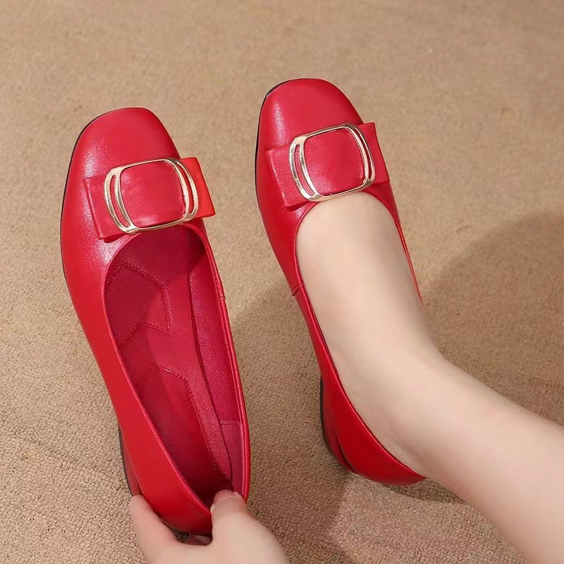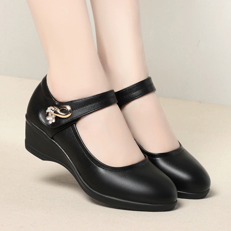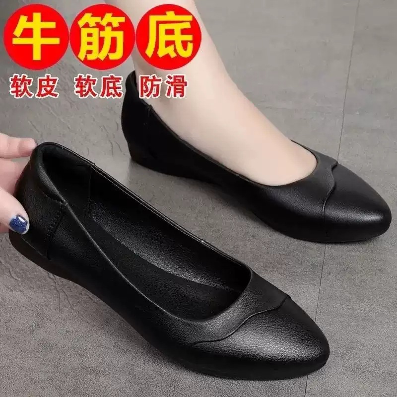 跨境软皮单鞋女2023新款中年女鞋防滑软底中跟女士皮鞋工作鞋