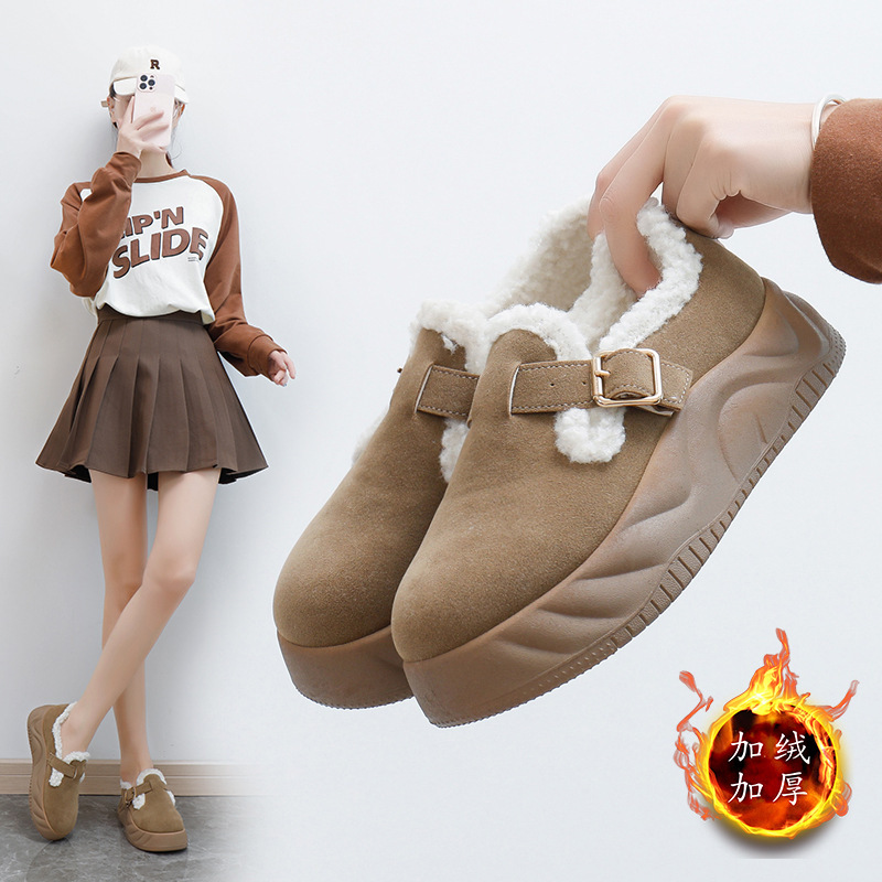 跨境加绒勃肯棉鞋女厚底2025冬新款批发懒人一脚蹬保暖圆头
