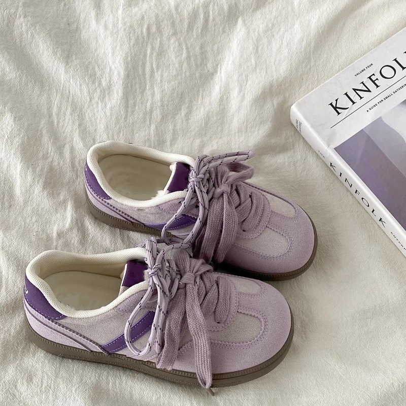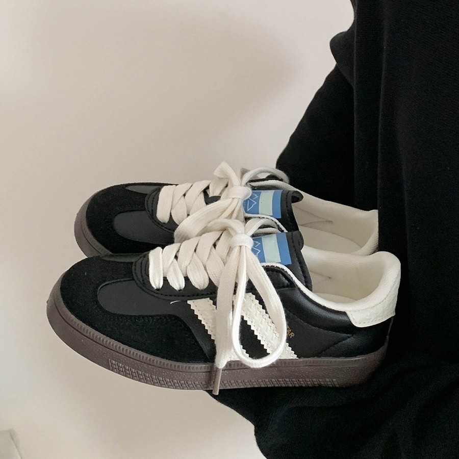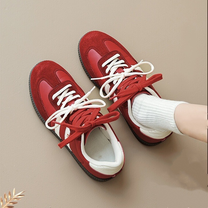 跨境德训女鞋2025新款拼色休闲运动鞋平跟复古学生板鞋批发外贸