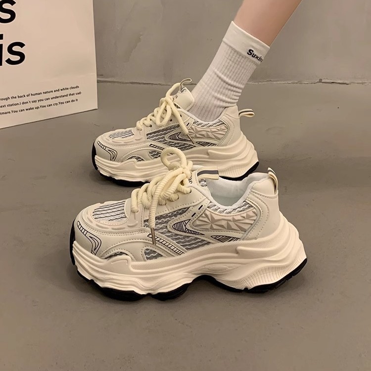 跨境超火厚底老爹鞋女2025夏季新款百搭增高小个子轻便网面休闲运