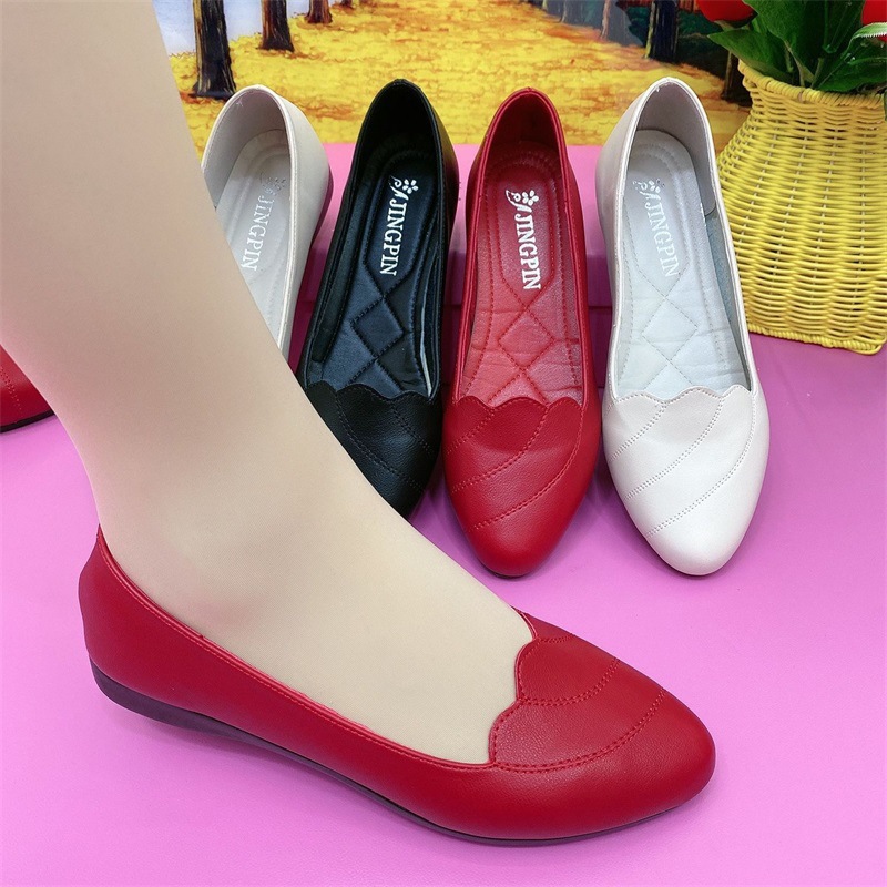 跨境妈妈鞋女士单鞋春秋款软底软面平底鞋中老年女士低跟皮鞋
