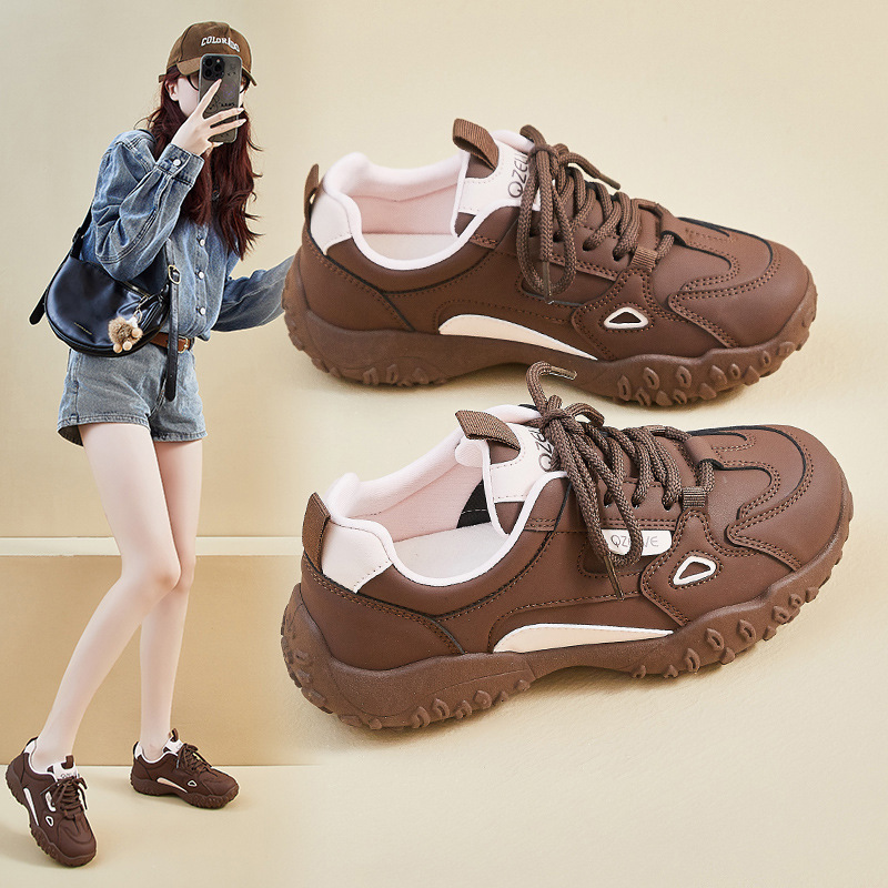 跨境2025春季女鞋真皮老爹鞋ins潮软底舒适健步小白鞋新款休闲运
